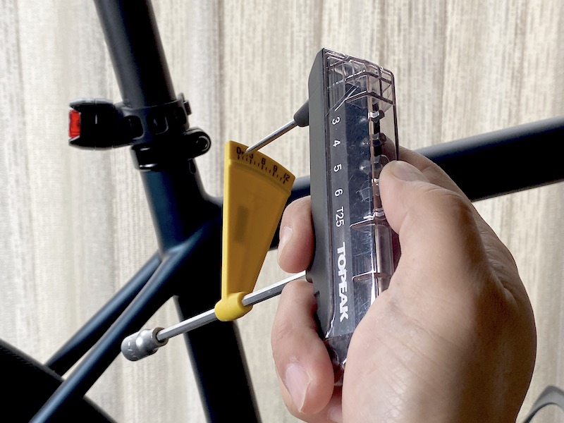 10N(ニュートン)以下でしめるポイントには、トピークの簡易型トルクレンチを使用しています。安いから持っていて損はない一品。