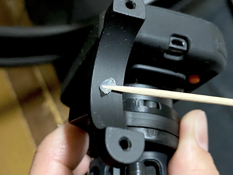 代理店さんが説明するやり方でもいいんですが、ワタクシは爪楊枝の先端に少しだけグリスをつけて、こすりつける形で薄く塗りのばしました。